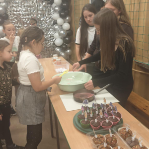 27 listopada odbyła się długo wyczekiwana zabawa andrzejkowa. Andrzejki, które na stałe wpisały się w scenariusz szkolnego kalendarza, są wspaniałą okazją do dobrej zabawy i jednocześnie podtrzymywania obrzędów ludowych. Wróżby pobudzają wyobraźnię, uczą kreatywności, pozwalają oderwać się od rzeczywistości i przenieść w świat marzeń i fantazji. Zabawę uświetniły przeboje oraz piękna dekoracja, a o wróżby, jak co roku, zadbała klasa VIII. Szaleństw, radości oraz uśmiechu było wiele i każdy z utęsknieniem czeka już na następny andrzejkowy bal. Wszyscy zadowoleni wrócili do domów, pełni wiary, że spełni się to, co sobie wywróżyli.